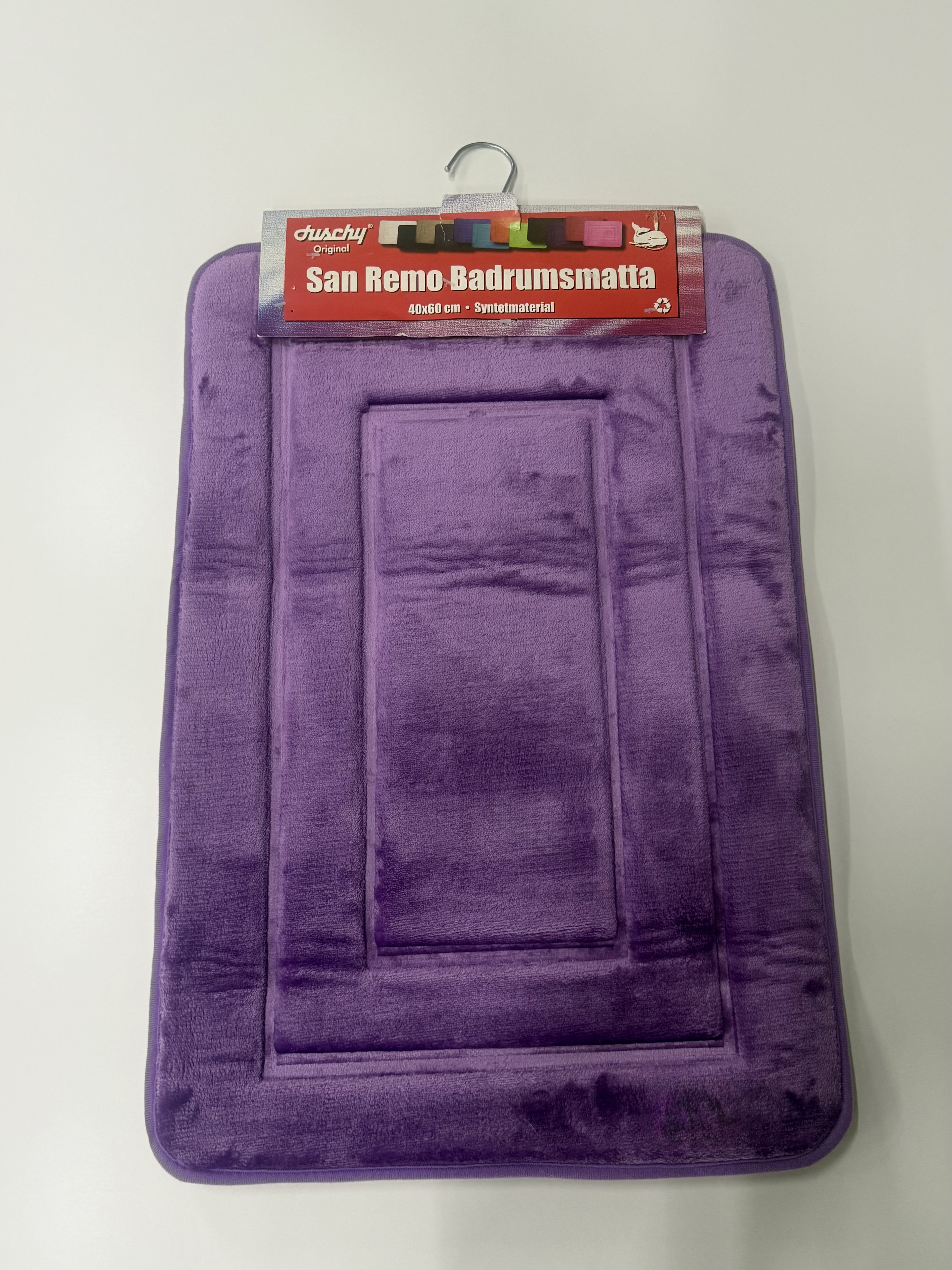Dywanik łazienkowy SAN REMO 766-75 w liliowym kolorze. Zastosowana do wypełnienia lepkosprężysta pianka poliuretanowa powoduje, że są one miękkie oraz przyjemne w dotyku. Dywanik jest podgumowany dzięki czemu nie ślizga się po podłodze.
